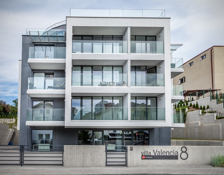 VILLA VALENCIA to projekt 18 eleganckich apartamentów: od 39 do 120 m2 w układzie od 1 do 4 pokoi, w kameralnej zabudowie wielorodzinnej, na działce o powierzchni 1408 m2 z pięknie zaaranżowanym ogrodem. Każda kondygnacja budynku jest połączona z podziemną halą garażową elegancką przeszkloną klatką schodową z windą. Części wspólne zostały wykonane z wysokiej jakości materiałów wykończeniowych, a przeszklenia i elementy aluminiowe dodały lekkości i przestronności.
